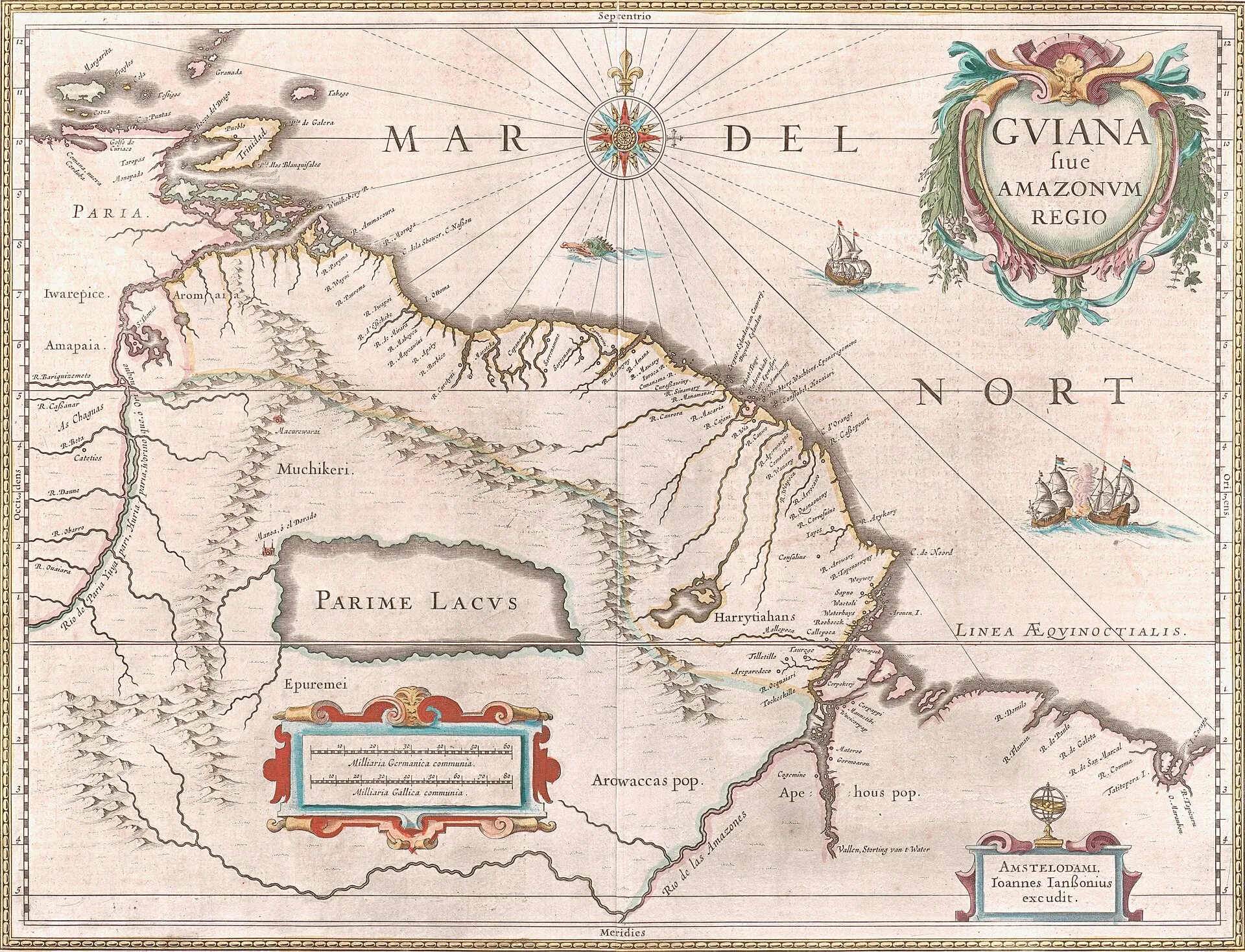 A 1649 map depicting the northern coast of South America, including Guyana, drawn by Jan Jansson, a Dutch cartographer (Source: Ibero-Amerikanischer Institut)