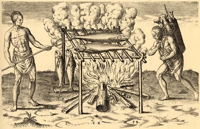 While I’ve discussed the Taino people and the genocide of the Taino at great length in other posts, it’s worth considering that the Taino did not originate on the various Caribbean islands they came to call home. The Tainos’ ancestors arrived in the Caribbean from South America - though where in South America is debated - roughly 2500 years ago. Sailing in canoes that could carry between 50 and 60 people each, the Arawak-speaking people diffused across the islands they encountered, becoming a culture of their own, linguistically similar, while also distinct. As with any group moving from place to place, they brought their food with them, introducing allspice, cassava, and scotch bonnets to the islands.
