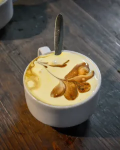 While your cookies are baking, make both the cookie dunk and the cream. Combine coffee, rum, and sugar in a cup (pro-tip! do not chug this mixture afterwards), then set it aside. Add your yoghurt, tofu, vanilla, butter, and sugar to your blender, and blend until smooth. Done!