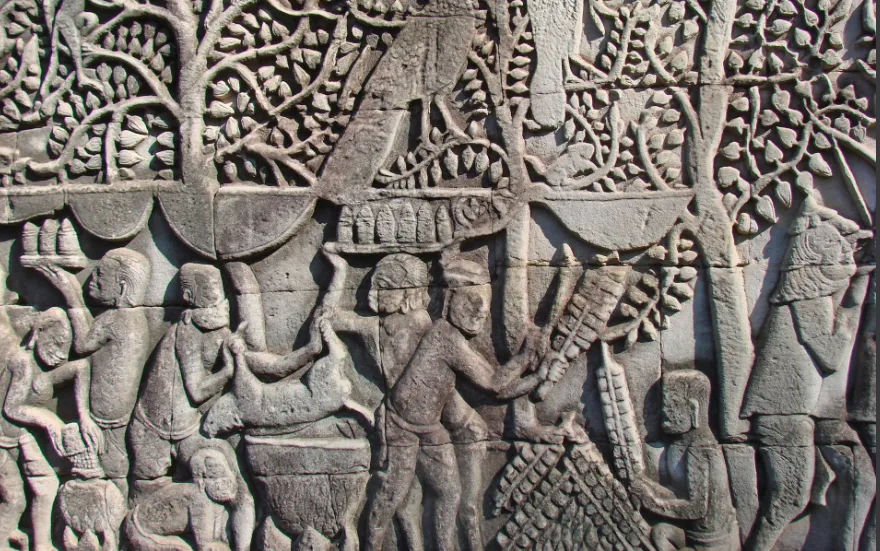 A temple relief in Angkor Thom depicting royal chefs (Source: Wikipedia)